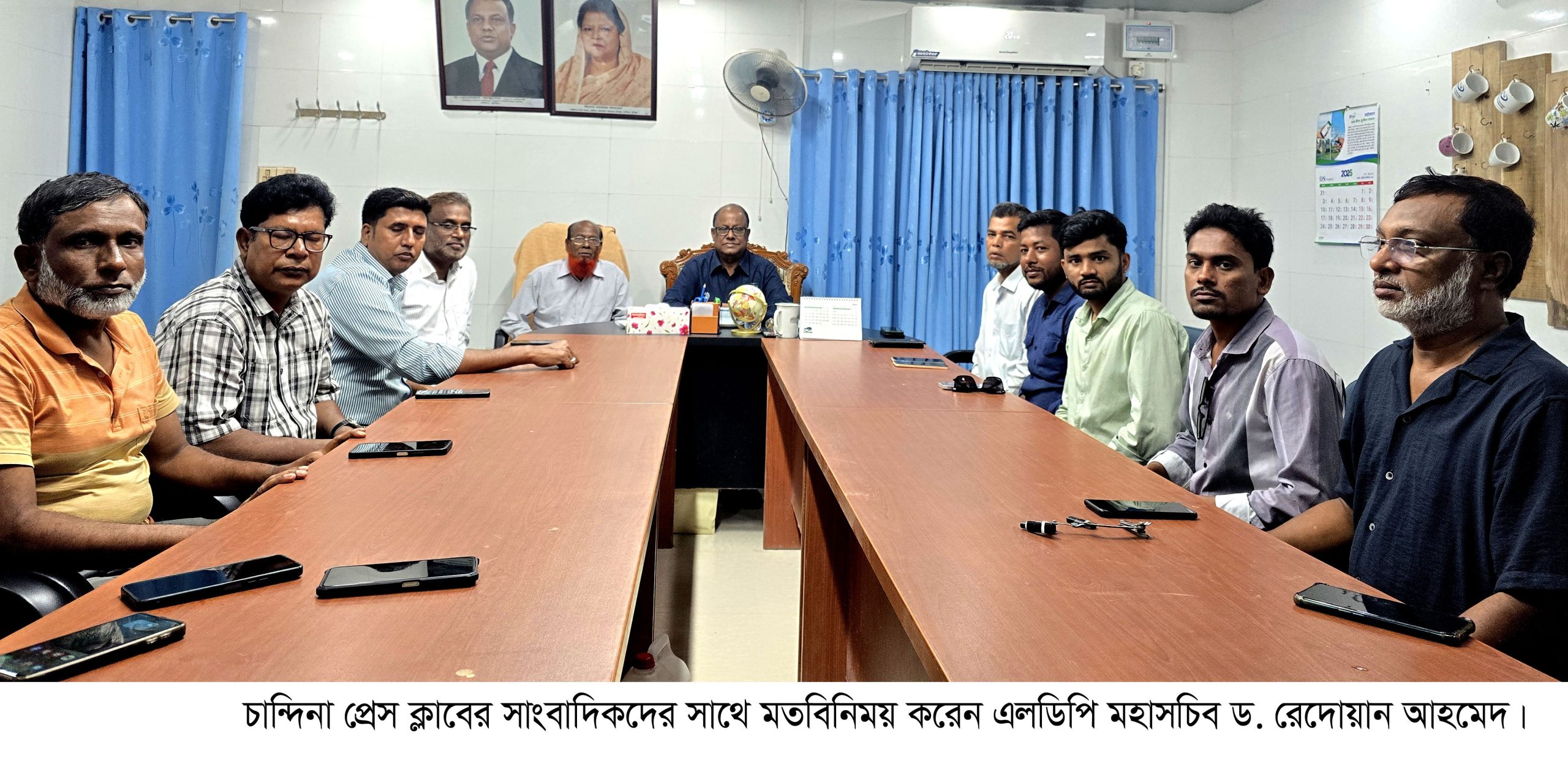 কুমিল্লার চান্দিনা প্রেস ক্লাবের সাংবাদিকদের সাথে মতবিনিময় করেছেন লিবারেল ডেমোক্রেটিক পার্টি (এলডিপি) মহাসচিব ড. রেদোয়ান আহমেদ।