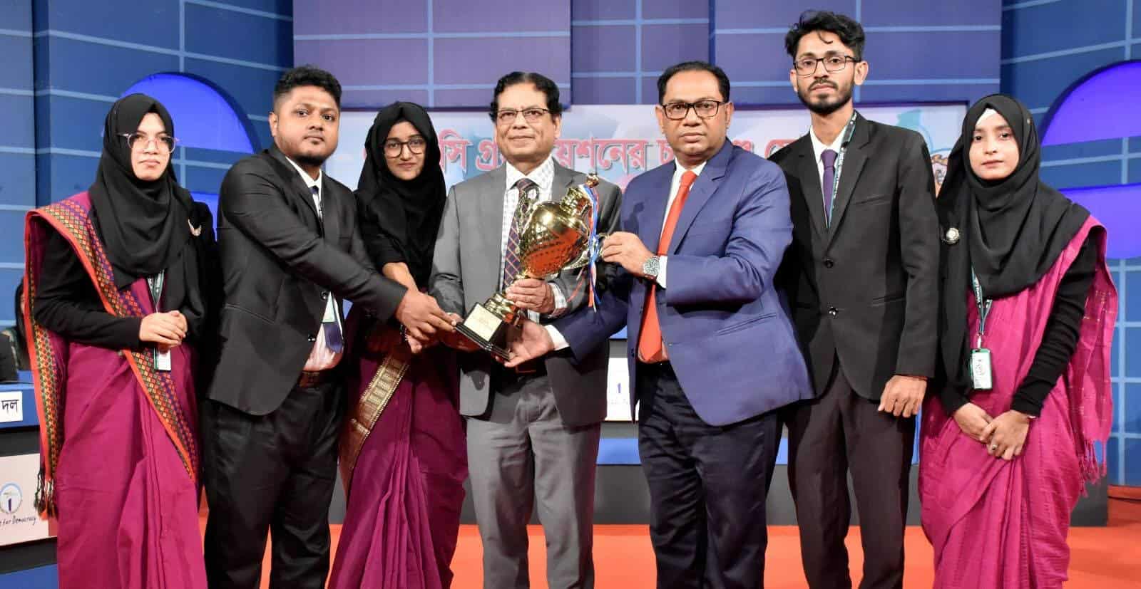 শনিবার (৩০ আগস্ট) রাজধানীর তেজগাঁওয়ে বাংলাদেশ চলচ্চিত্র উন্নয়ন কর্পোরেশন (বিএফডিসি) প্রাঙ্গণে আয়োজিত ‘ডিবেট ফর ডেমোক্রেসি’র ছায়া সংসদ বিতর্ক প্রতিযোগিতায় তারা প্রাইম ইউনিভার্সিটিকে পরাজিত করে বিজয়ের মুকুট ছিনিয়ে নেয়।