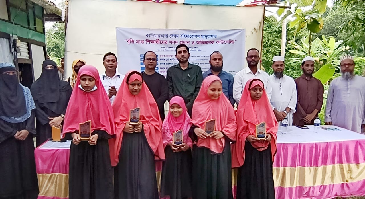 দাউদকান্দি উপজেলার কাদিয়ারভাঙ্গা বেগম রহিমারোশন মাদরাসার বৃত্তি প্রাপ্ত শিক্ষার্থীদের সনদ প্রদান ও অভিভাবক কাউন্সেলিং অনুষ্ঠিত হয়েছে। রবিবার সকাল ১০টায় মাদরাসা মাঠে এই অনুষ্ঠান সম্পন্ন হয়।