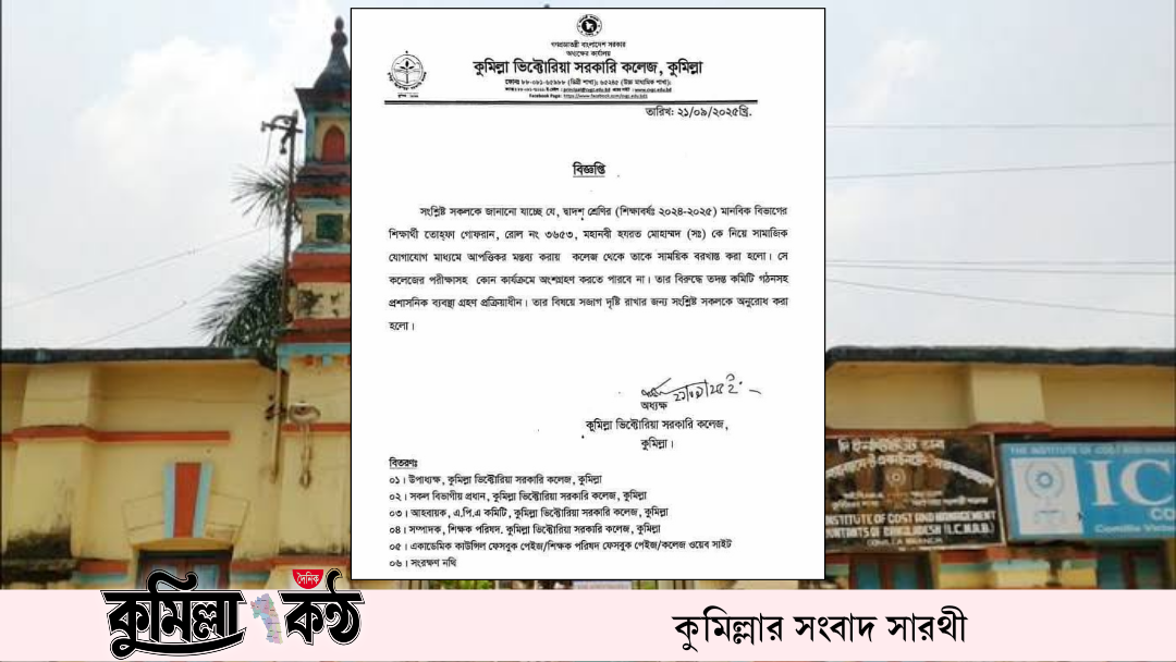 রাসূল (সঃ)কে নিয়ে কটুক্তি করায় ভিক্টোরিয়া কলেজের শিক্ষার্থী বহিষ্কার