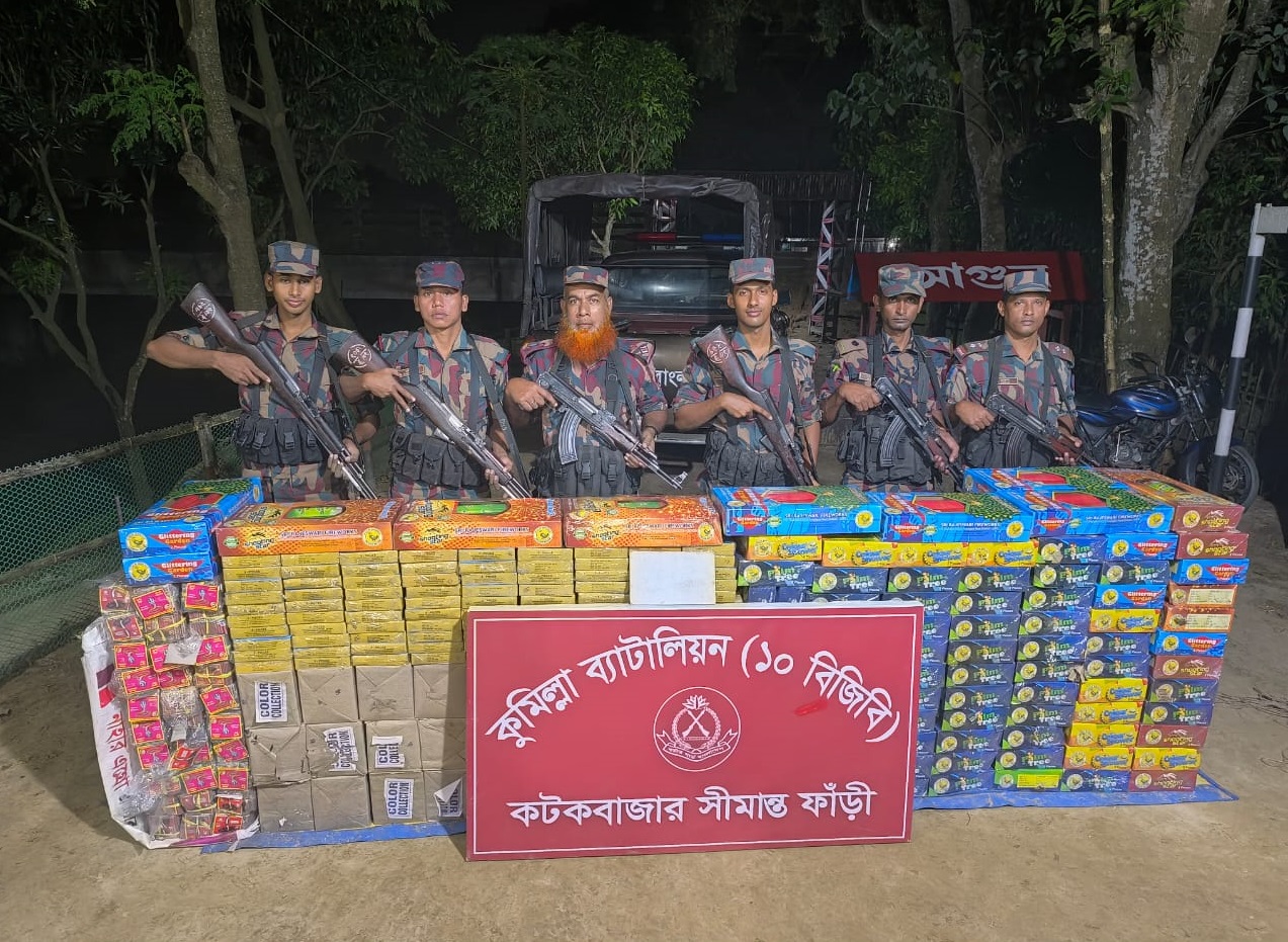 কুমিল্লায় বিজিবির অভিযানে বাজি ও মাদক উদ্ধার