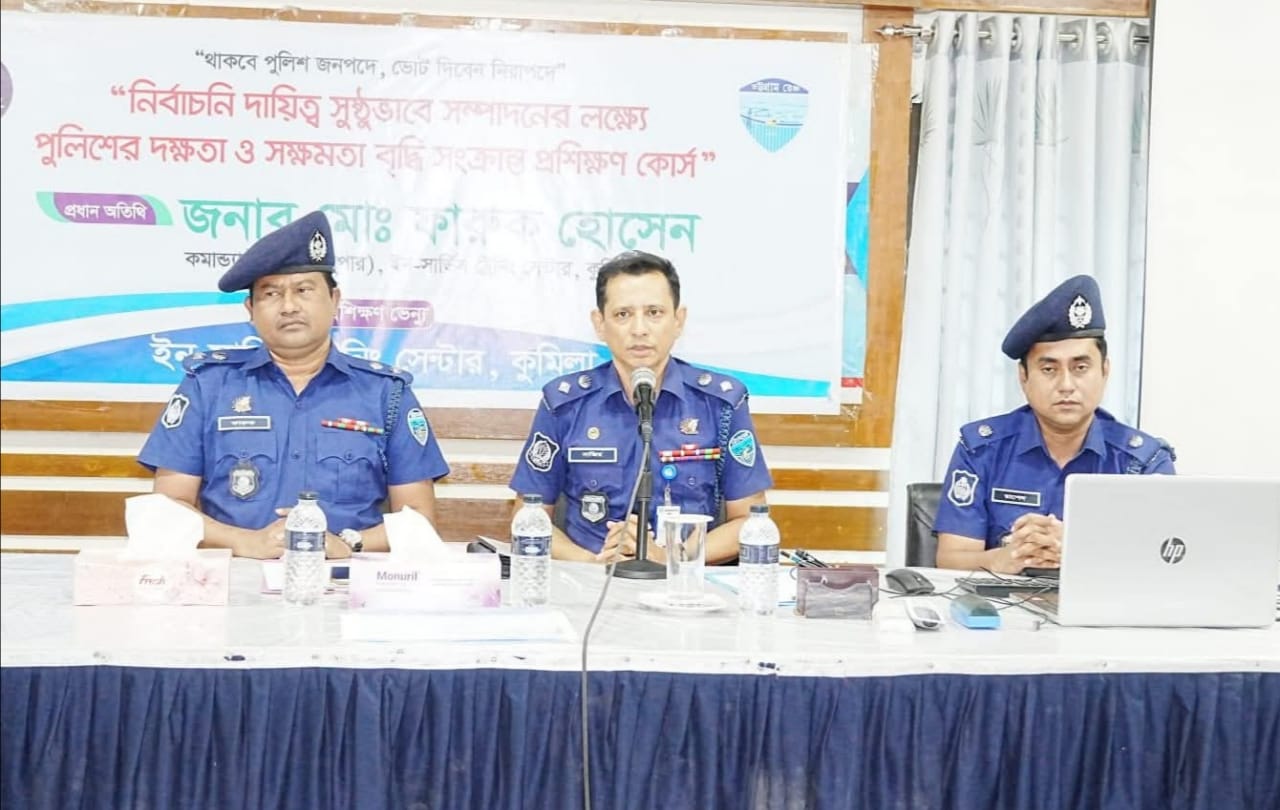 আসন্ন নির্বাচনে দায়িত্ব সুষ্ঠুভাবে ও পেশাদারিত্বের সঙ্গে সম্পাদনের লক্ষ্যে পুলিশের দক্ষতা ও সক্ষমতা বৃদ্ধিমূলক প্রশিক্ষণ কর্মশালা অনুষ্ঠিত হয়েছে। মঙ্গলবার (৭ অক্টোবর) কুমিল্লা জেলা পুলিশ লাইন্সে অনুষ্ঠিত এ প্রশিক্ষণ কর্মশালার (চতুর্থ পর্যায়) সভাপতিত্ব করেন কুমিল্লা জেলার পুলিশ সুপার মোহাম্মাদ নাজির আহমেদ খাঁন।