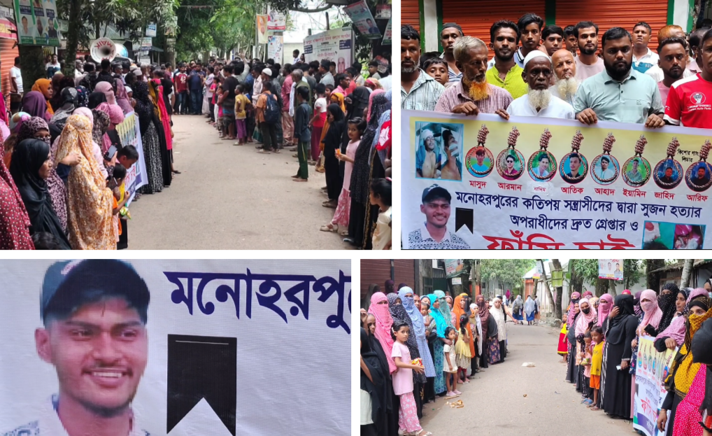 কুমিল্লার ব্রাহ্মনপাড়া উপজেলায় কিশোর গ্যাং এর হামলায় নিহত শিক্ষার্থী সুজন হত্যার বিচারের দাবীতে মানববন্ধন করেছে এলাকাবাসী। বুধবার(০৮-১০-২৫) বিকালে অলুয়া চৌরাস্তা মোড়ে এই মানববন্ধন অনুষ্ঠিত হয়।
