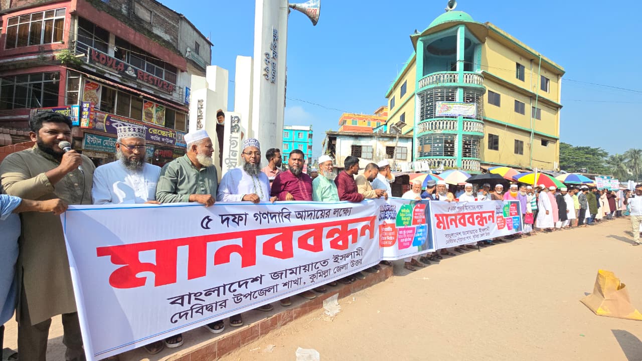 দেবিদ্বারে ৫ দফা দাবী‌তে জামায়াতে ইসলামী’র মানববন্ধন