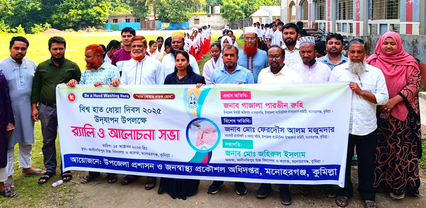 বিশ্ব হাত ধোয়া দিবস উদ্যাপন উপলক্ষে মনোহরগঞ্জে র‍্যালি ও আলোচনা সভা