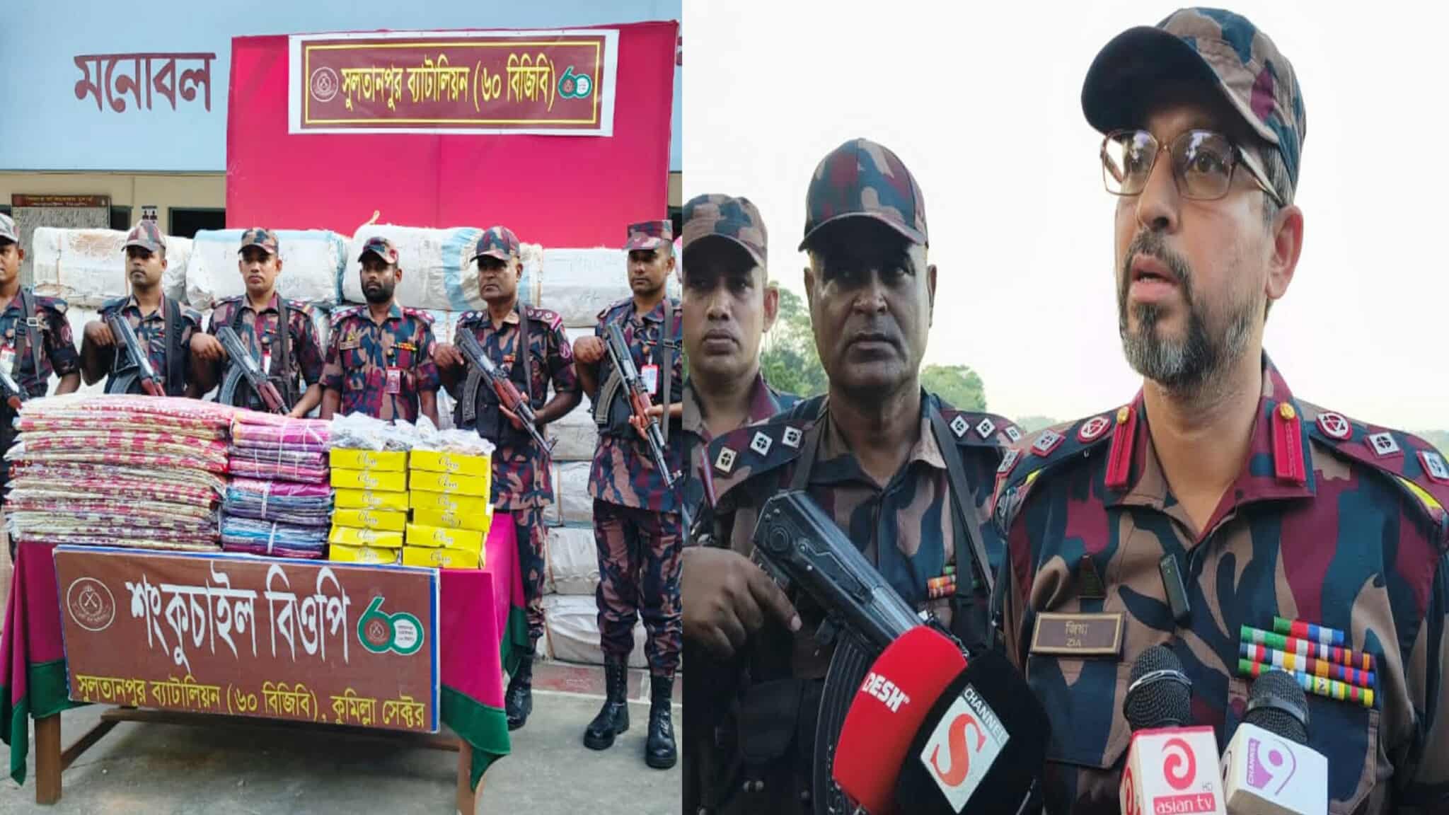 বিজিবি-৬০ ব্যাটালিয়নের অধিনায়ক লে. কর্ণেল মো. জিয়াউর রহমান জানান, সীমান্ত এলাকা খেকে এক কোটি ১৯ লাখ ৯১ হাজার টাকা মূল্যের অবৈধ ভারতীয় শাড়ি ও থ্রি-পিস এবং চার কোটি ৫০ লাখ ৮০ হাজান টাকা মূল্যের ভারতীয় চশমা জব্দ করা হয়। উদ্ধারকৃত মালামাল কুমিল্লা কাস্টমসে জমা দেওয়ার বিষয়টি প্রক্রিয়াধীন আছে।