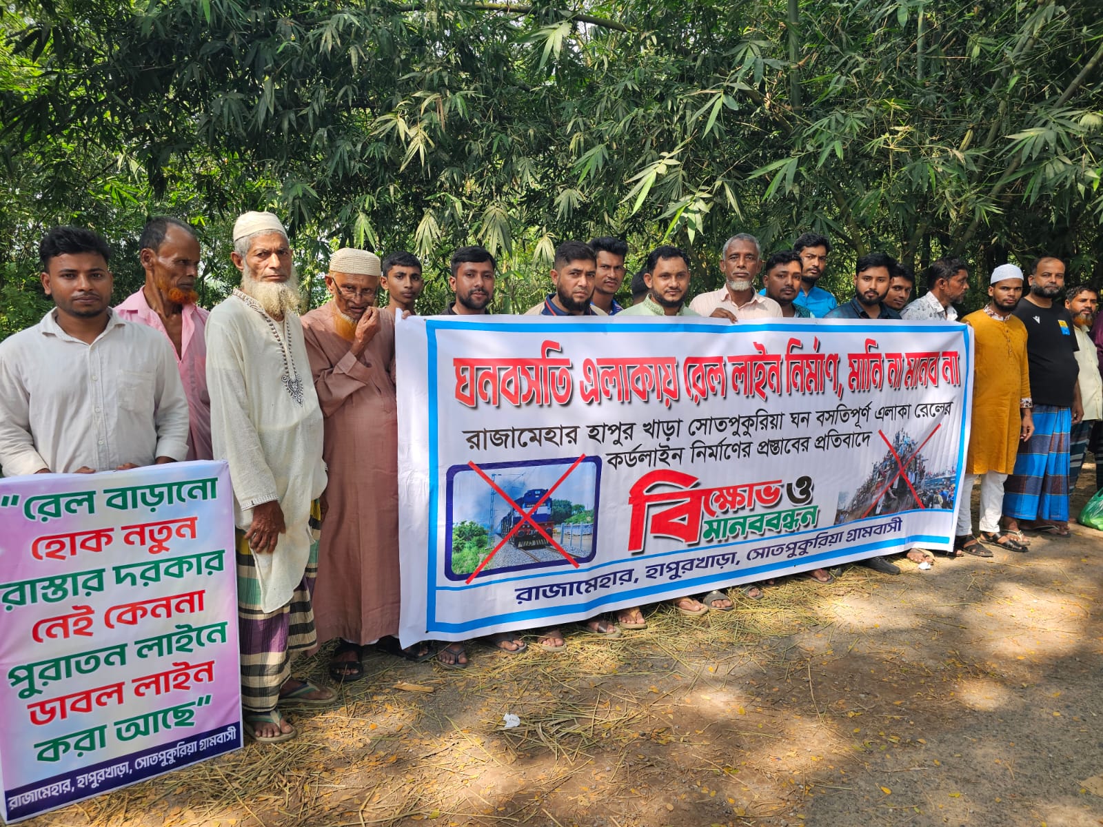 দেবিদ্বারে রেললাইন নির্মাণের প্রতিবাদে গ্রামবাসীর মানববন্ধন