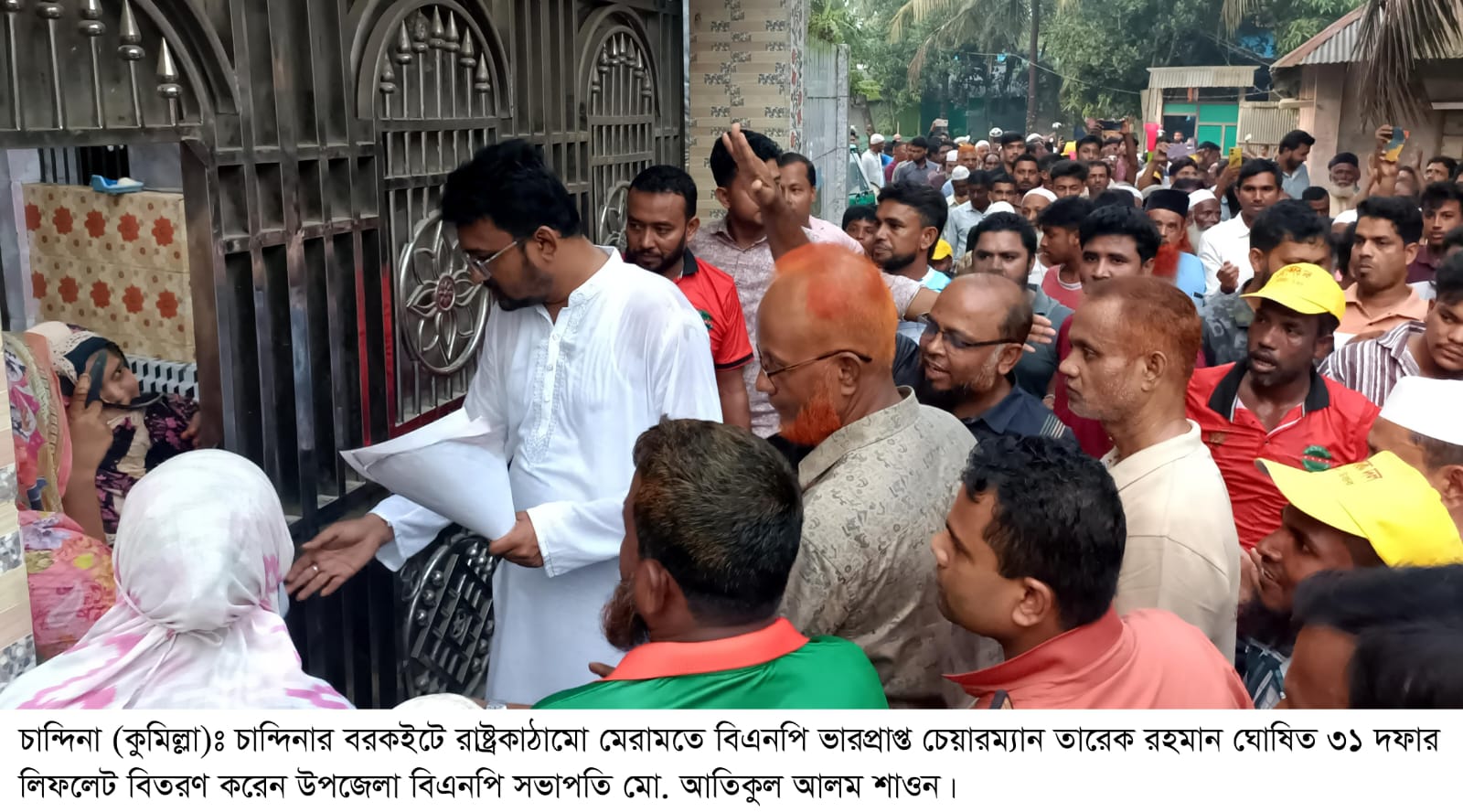 রাষ্ট্রকাঠামো মেরামতে বিএনপি ভারপ্রাপ্ত চেয়ারম্যান তারেক রহমান ঘোষিত ৩১ দফার লিফলেট বিতরণে ভোটারদের দ্বারে দ্বারে ঘুরছেন উপজেলা বিএনপি সভাপতি মো. আতিকুল আলম শাওন।