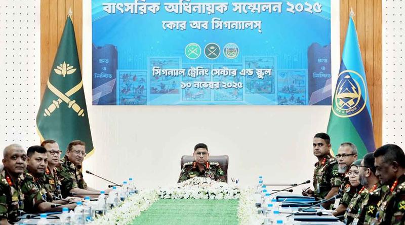 কোর অব সিগন্যালসের বাৎসরিক অধিনায়ক সম্মেলন-২০২৫ অনুষ্ঠিত হয়েছে। সোমবার (১০ নভেম্বর) যশোর সেনানিবাসে সিগন্যাল ট্রেনিং সেন্টার অ্যান্ড স্কুলে (এসটিসিএন্ডএস) এ সম্মেলন অনুষ্ঠিত হয় বলে এক সংবাদ বিজ্ঞপ্তিতে জানায় আন্তঃবাহিনী জনসংযোগ পরিদপ্তর (আইএসপিআর)।