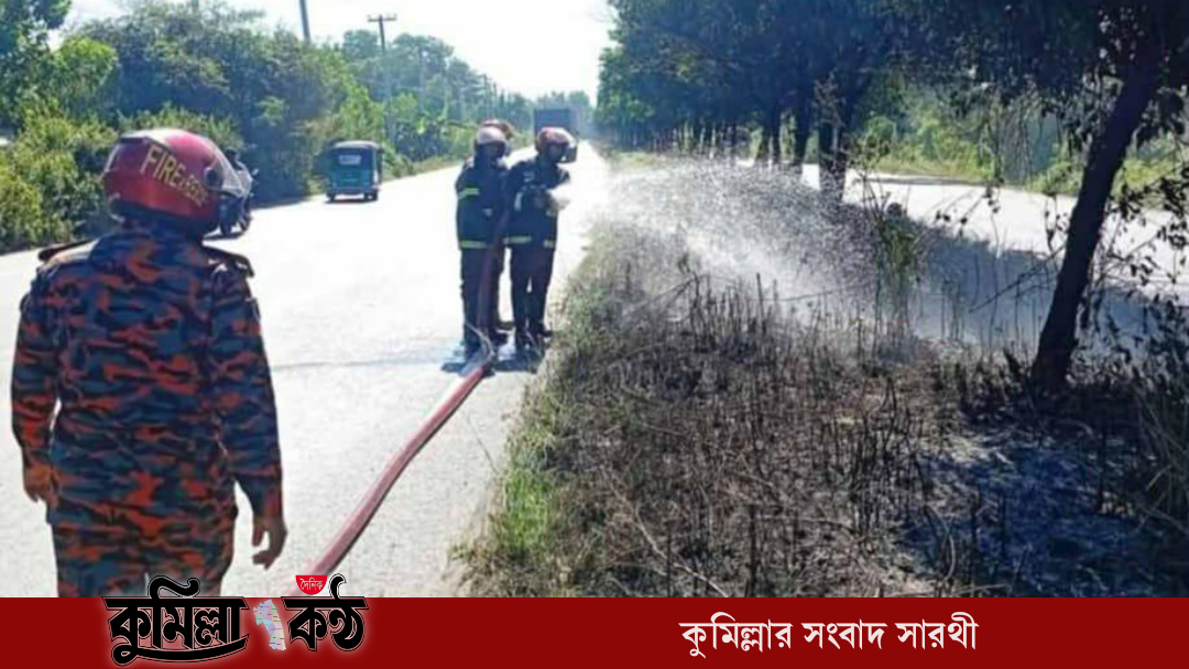 ঢাকা-চট্টগ্রাম মহাসড়কে বিভাজকের ঘাসে আগুন, ক্ষতিগ্রস্ত বকুল গাছ