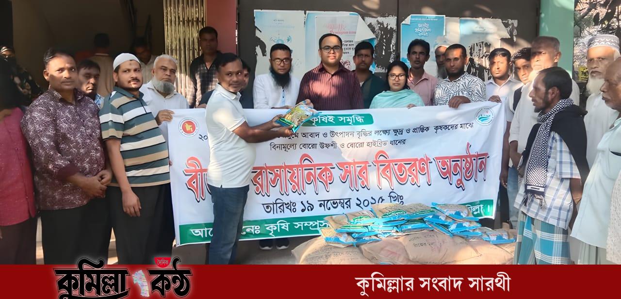 কুমিল্লার বুড়িচং উপজেলায় খাদ্য উৎপাদন বৃদ্ধির লক্ষ্যে ক্ষুদ্র ও প্রান্তিক কৃষক এবং বন্যায় ক্ষতিগ্রস্ত কৃষকদের মাঝে রবি মৌসুমের বিনামূল্যে বিভিন্ন ফসলের বীজ এবং রাসায়নিক সার বিতরণ কার্যক্রমের উদ্বোধন হয়েছে।