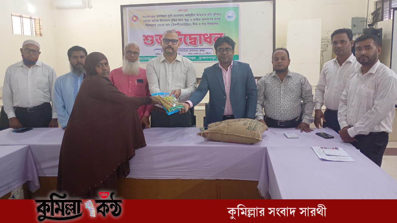 ব্রাহ্মণপাড়ায় কৃষকের মাঝে বিনামূল্যে ধানবীজ ও সার বিতরণ