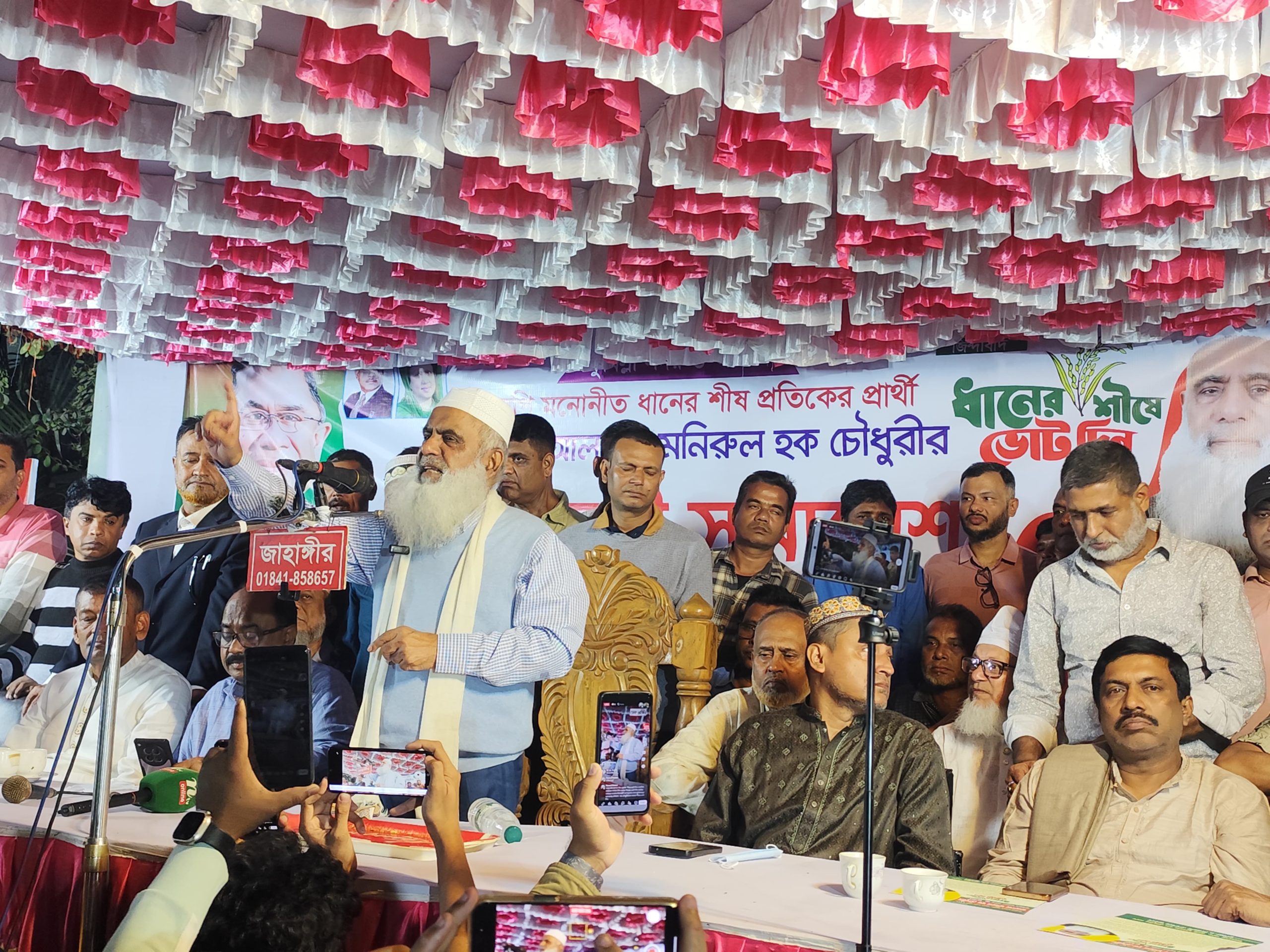 মনিরুল হক চৌধুরী বলেন, আমি আমি মুক্তিযোদ্ধা করেছি, শেখ মুজিবের শাসন দেখেছি, শহীদ প্রেসিডেন্ট জিয়াউর রহমানের শাসনামল দেখেছি, এরশাদের শাসনামল দেখেছি, গত ১৫ বছর স্বৈরাচার শেখ হাসিনার শোষণ দেখেছি। গত ১৫ বছর আমি ও আমার পরিবার রাজপথে লড়াই সংগ্রাম করেছি, মামলা খেয়েছি জেল খেটেছি। জুলাই এর গণঅভ্যুত্থানে আমারর মাসুম মেয়ে ঢাকা বিশ্ববিদ্যালয়ের শিক্ষক রাজপথে লড়াই করেছে আপনারা অনেকেই দেখেছেন। আমি কুমিল্লার মানুষের জন্য সারা জীবন কাজ করেছি। এবার শেষবারের মতো আমাকে একটি সুযোগ দিন। আমি জীবনের শেষ সময়টা কুমিল্লার মানুষের জন্য কাজ করে যেতে চাই।