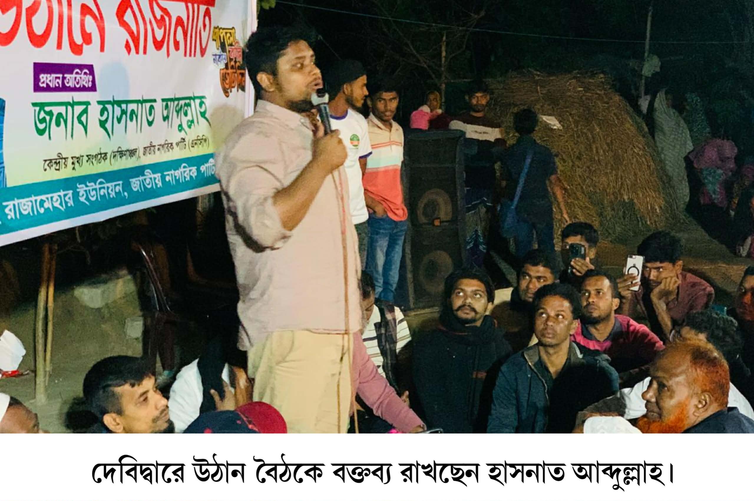 শুক্রবার রাতে রাজামেহার বদল বাড়ি এলাকায় এনসিপি আয়োজিত এক উঠান বৈঠকে তিনি এসব কথা বলেন। এর আগে সকাল ৭টা থেকে রাজামেহার ইউনিয়নের বিভিন্ন এলাকায় দিনব্যাপী গণসংযোগ করেন তিনি। ওই ইউনিয়নের বিভিন্ন গ্রাম, হাটবাজার ও বাড়ি বাড়ি গিয়ে সাধারণ মানুষের সঙ্গে কথা বলেন।