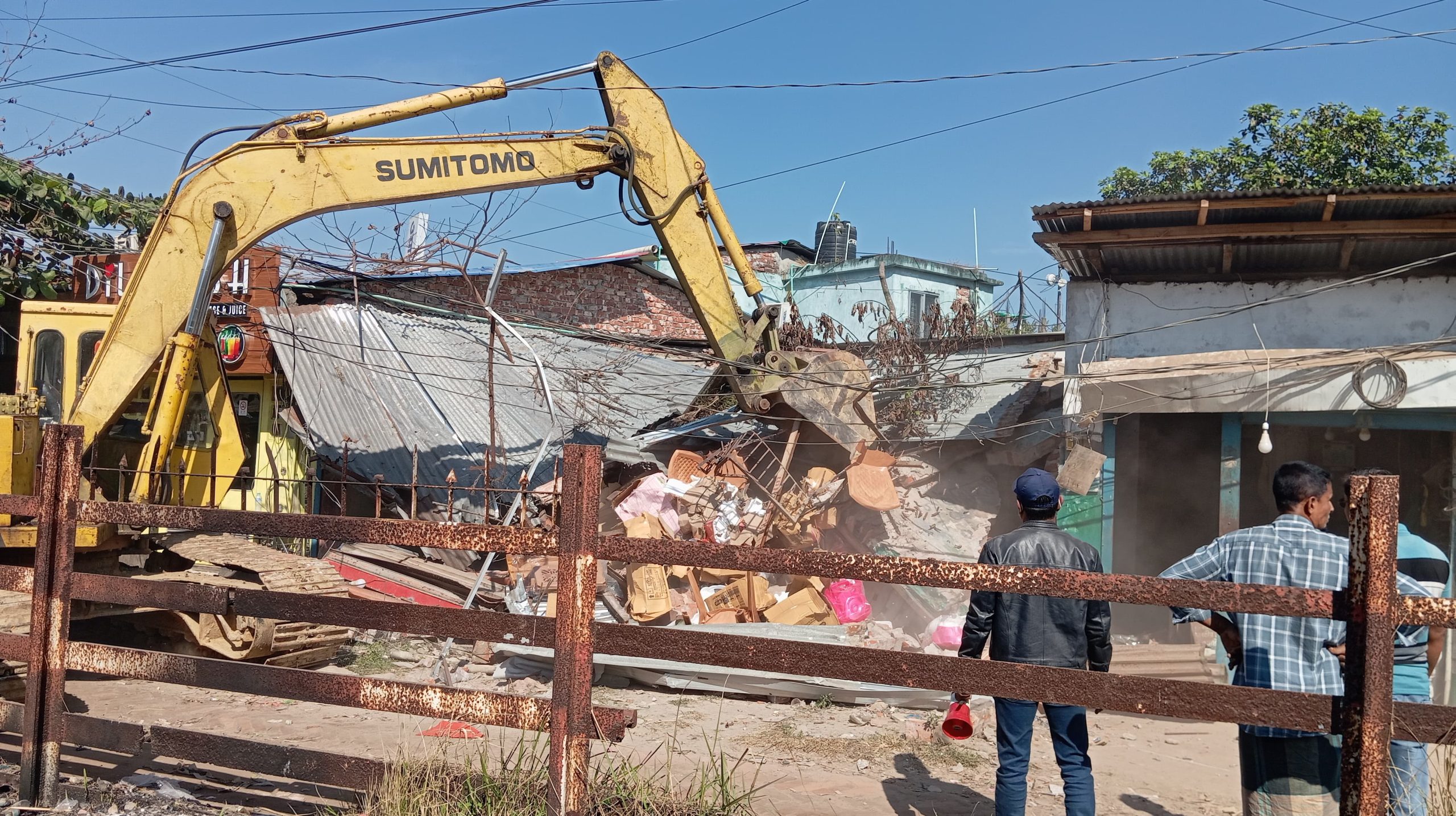 কুমিল্লার নাঙ্গলকোট বাজারে রেলওয়ের জায়গা থেকে ক্ষতিপূরণ লাইসেন্স এর আওতায় নির্মাণ করা স্থাপনা, দোকানপাট উচ্ছেদ করা হয়েছে। বুধবার সকাল ১০টা থেকে দিনব্যাপী নাঙ্গলকোট বাজার রেলগেইট থেকে নাঙ্গলকোট রেলওয়ে স্টেশন এলাকায় এই উচ্ছেদ অভিযান চালায় রেলওয়ে কর্তৃপক্ষ। নাঙ্গলকোট উপজেলা প্রশাসনের সহায়তায় অভিযানে নেতৃত্ব দেন রেলওয়ে চট্টগ্রাম বিভাগীয় ভূসম্পত্তি কর্মকর্তা খোরশেদ আলম চৌধুরী। অভিযানে নাঙ্গলকোট রেলওয়ে স্টেশনের পূর্ব পাশের রাস্তার পাশে রেলওয়ের জায়গায় অবৈধভাবে গড়ে উঠা চাউলের আড়ৎ, মোবাইল মেরামতের দোকান, কোকারিজ, ফুল, ইভেন্ট ম্যানেজমেন্ট, স্টুডিও, হোমিওপ্যাথি ডাক্তার চেম্বার,ফার্ণিচার, থাই এলুমিনিয়াম, টেইলার্স, প্রেস, সেলুন, মনোহারি দোকান, চায়ের দোকান, হোটেলসহ স্থায়ী ও অস্থায়ী ৬৭টি স্থাপনা গুঁড়িয়ে দেওয়া হয়। এব্যাপারে নাঙ্গলকোটের রাজনীতিবিদ ও সমাজসেবক ব্যবসায়ী মোহাম্মদ বশিরুজ্জামান বলেন যেহেতু সকল স্থাপনা মালিকদের কাছে রেলওয়ে কতৃপক্ষের দেওয়া ক্ষতিপূরণ নামক একটি লাইসেন্স রয়েছে তাই রেলওয়ে কতৃপক্ষ যদি এই উল্লেখিত লাইসেন্সদারীদের ঘর উচ্ছেদ করার সিদ্ধান্ত গ্রহণ করে থাকে তাহলে অবশ্যই তাদেরকে এই লাইসেন্স বাতিল ঘোষণা করে উচ্ছেদের পূর্বে সকল স্থাপনা মালিকদের চিঠি দেওয়া উচিত ছিলো। ক্ষতিপূরণ লাইসেন্সের আওতায় স্হাপনা মালিকদেরকে কোনো প্রকার চিঠি না দিয়ে তাদের প্রতিষ্ঠান ঘুড়িয়ে দেওয়া লাইসেন্সকারীদের উপর অন্যায় করা হয়েছে। আমি রেলওয়ে কতৃপক্ষের এমন হটকারি সিদ্ধান্তের তীব্র নিন্দা ও প্রতিবাদ জানাই এবং রেলওয়ে কতৃপক্ষের কাছে ভেঙে ঘুড়িয়ে দেওয়া স্থাপনা মালিকদের ক্ষতিপূরণের দাবী জানাই। এক্সিকিউটিভ ম্যাজিস্ট্রেট ও নাঙ্গলকোট উপজেলা সহকারী কমিশনার (ভূমি) মিল্টন চাকমা বলেন, আমি অভিযানে শুধু মাত্র এক্সিকিউটিভ ম্যাজিস্ট্রেট হিসেবে আইনশৃঙ্খলা নিয়ন্ত্রণে কাজ করেছি। রেলওয়ের চট্টগ্রাম বিভাগীয় ভূ-সম্পত্তি কর্মকর্তা খোরশেদ আলম চৌধুরী বলেন, নাঙ্গলকোট রেলওয়ে স্টেশন এলাকায় অবৈধভাবে গড়ে উঠা স্থাপনা উচ্ছেদে এই অভিযান চালানো হয়। অভিযানে ৫০টি স্থাপনা দখলমুক্ত করা হয়। জনস্বার্থে এমন অভিযান ভবিষ্যতেও অব্যাহত থাকবে। অভিযানে রেলওয়ের চট্টগ্রাম বিভাগীয় সহকারী ভূসম্পত্তি কর্মকর্তা, রেলওয়ের কানুনগো, স্টেশন মাস্টারসহ ও যৌথ বাহিনীর সদস্যরা উপস্থিত ছিলেন।