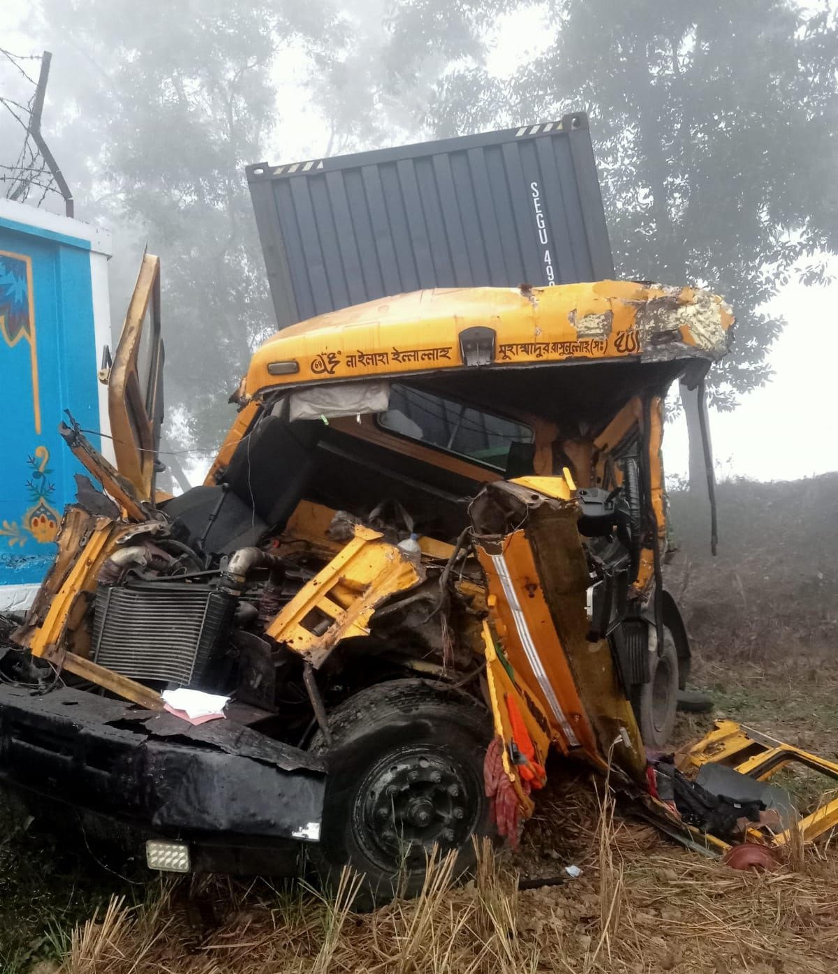 প্রত্যক্ষদর্শীরা জানায়, ঘন কুয়াশার কারণে রোববার আমানঘন্ডা এলাকায় চট্টগ্রামমুখী একটি কাভার্ড ভ্যানকে পেছনে থাকা লরি ধাক্কা দেয়। এতে লরিটির সামনের অংশ দুমড়েমুচড়ে ঘটনাস্থলে চালক মারা যান। গুরুতর আহত হেলপারকে উপজেলা স্বাস্থ্য কমপ্লেক্স নিয়ে আসার পর তিনিও মারা যান।