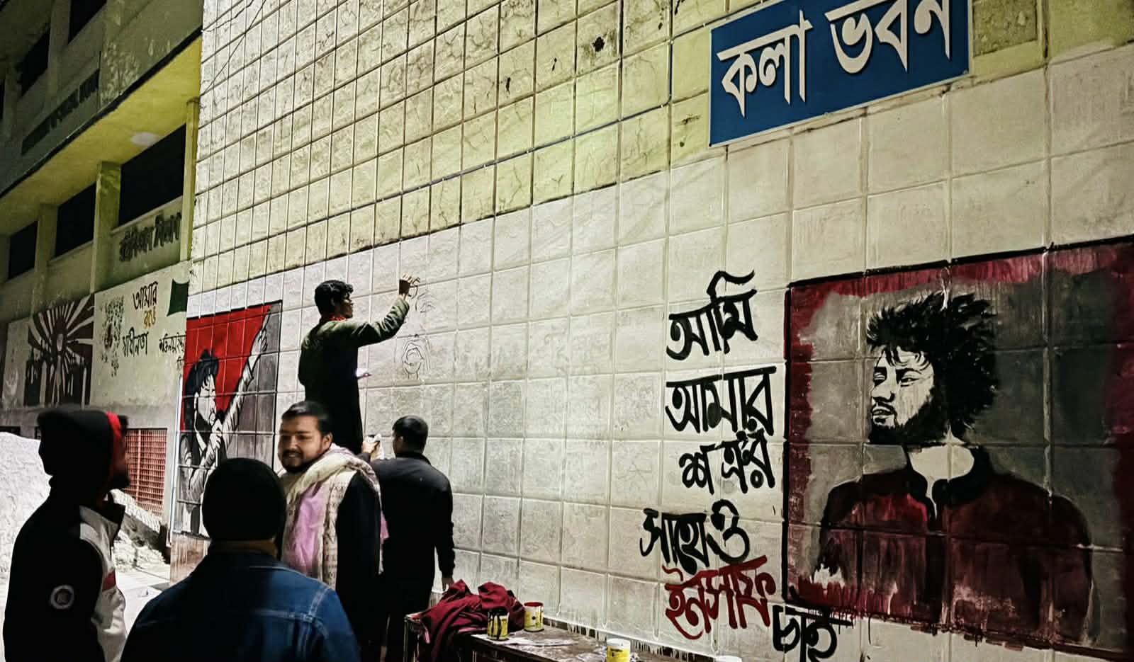 ভিক্টোরিয়া কলেজের দেয়ালে ওসমান হাদির গ্রাফিতি