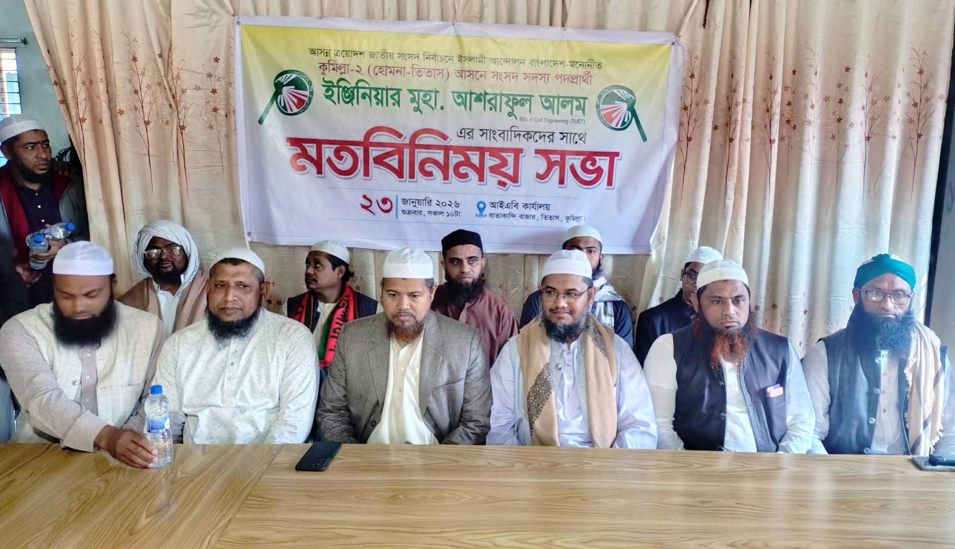 ইসলামী আন্দোলন বাংলাদেশ -মনোনীত কুমিল্লা-২(হোমনা-তিতাস) আসনের সংসদ সদস্য পদপ্রার্থী ইঞ্জিনিয়ার আশরাফুল আলম এর সাংবাদিকদের সাথে মতবিনিময় সভা বলেন আমরা শরীয়া আইনে দেশ পরিচালনা করার জন্য কাজ করে যাচ্ছি। আমরা বিশ্বাস করি আল্লাহ আইন ছাড়া মানুষের অধিকার ও ন্যায় ইনসাফ প্রতিষ্ঠা করা সম্ভব নয়।এদেশের প্রতিটি স্তরে দুর্নীতি চলে, যখন ইসলামে আইন কায়েম হবে তখন সব দুর্নীতি বন্ধ হয়ে যাবে জনগণের কল্যাণের রাষ্ট্র প্রতিষ্ঠিত হবে।