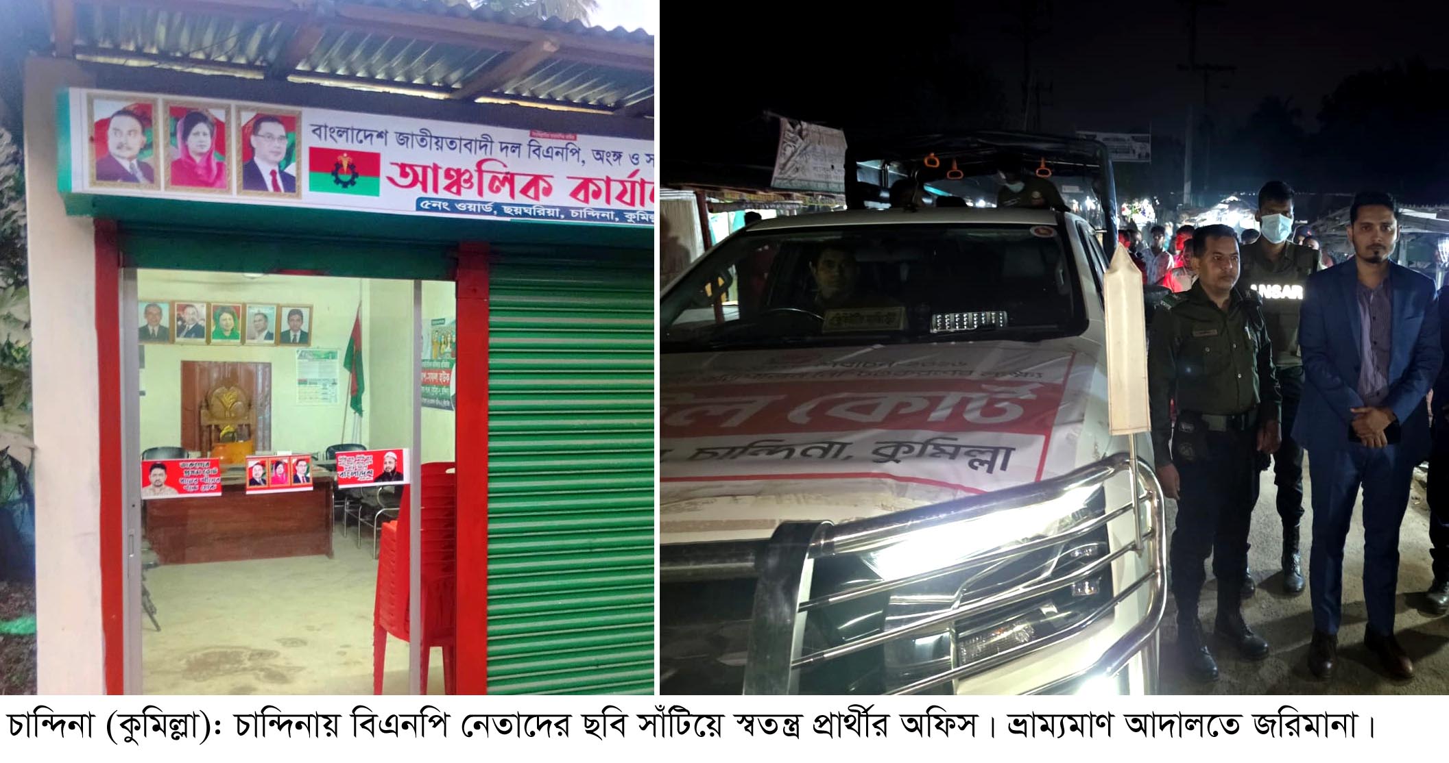 ধানের শীষ ও বিএনপি নেতৃবৃন্দের ছবি সাঁটিয়ে স্বতন্ত্র প্রার্থীর অফিস ভ্রাম্যমাণ আদালতে জরিমানা