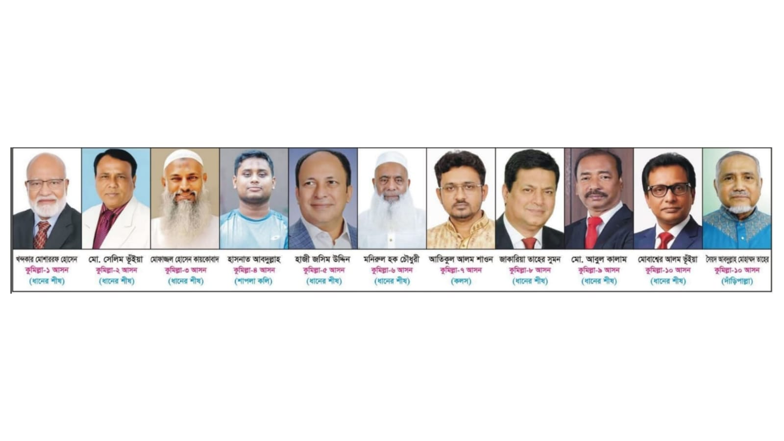 নির্বাচনে কুমিল্লা-১ (দাউদকান্দি-মেঘনা) আসনে বিজয়ী হয়েছে বিএনপির প্রার্থী ও দলের স্থায়ী কমিটির সদস্য ড. খন্দকার মোশাররফ হোসেন, কুমিল্লা-২ (হোমনা-তিতাস) আসনে বিজয়ী হয়েছেন বিএনপির প্রার্থী অধ্যক্ষ সেলিম ভূইয়া, কুমিল্লা-৩ (মুরাদনগর) আসনে বিজয়ী হয়েছেন বিএনপির প্রার্থী শাহ মোফাজ্জল হোসাইন কায়কোবাদ, কুমিল্লা-৪ (দেবিদ্বার) আসনে বিজয়ী হয়েছেন জাতীয় নাগরিক পার্টি- এনসিপির প্রার্থী আবুল হাসনাত ওরফে হাসনাত আবদুল্লাহ, কুমিল্লা-৫ (বুড়িচং-ব্রাহ্মণপাড়া) আসনে বিজয়ী হয়েছেন বিএনপির প্রার্থী হাজী জসিম উদ্দিন,