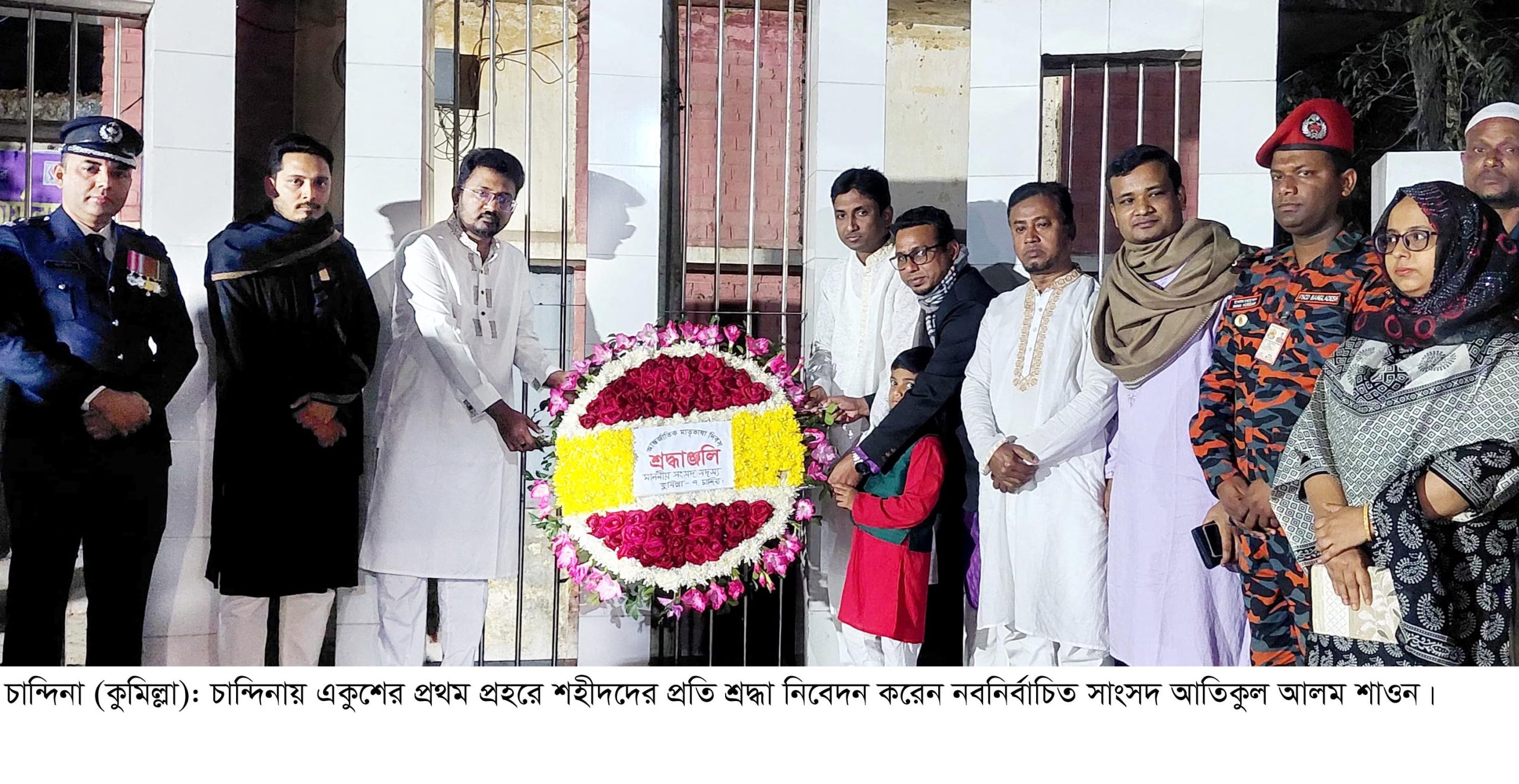 চান্দিনায় একুশের প্রথম প্রহরে শহীদদের প্রতি এমপি শাওনের শ্রদ্ধা