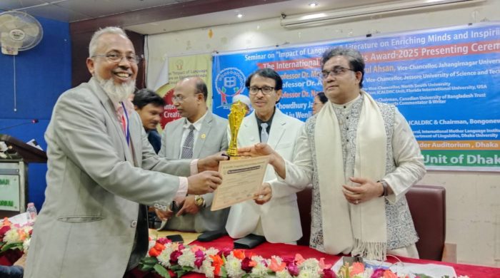 অফিস রিপোর্ট ঢাকা বিশ্ববিদ্যালয়ের ইন্টারন্যাশনাল ক্রিয়েটিভ আর্টস লেঙ্গুইজ এন্ড ডেভেলপমেন্ট রিসার্চ সেন্টার আইসিএএলডিআরসি (ICALDRC) ভাষাবিজ্ঞান ইউনিটের আয়োজিত “ Seminar Impact Of language & literature on Enriching Minds and Inspiring lives” শীর্ষক সেমিনার এবং বিভিন্ন ক্ষেত্রে গুরুত্বপূর্ণ জাতীয় অবদানের স্বীকৃত স্বরূপ দেশের স্ব-স্ব ক্ষেত্রে সাফল্যের অবদানের জন্য বিশিষ্টজনদের সন্মাননা, পুরস্কার ও ফেলোশিপ প্রদান করা হয়। মতিন