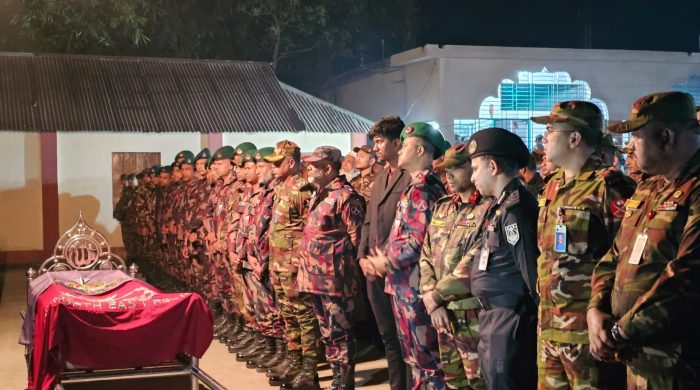 ঢাকা অফিস সুদানের আবেইতে জাতিসংঘ শান্তিরক্ষা মিশনে দায়িত্ব পালনকালে সন্ত্রাসী ড্রোন হামলায় নিহত বাংলাদেশ সেনাবাহিনীর ৬ সদস্যের মরদেহ ঢাকায় আনা হবে শনিবার (২০ ডিসেম্বর। মাতৃভূমিতে ফেরার পর যথাযথ রাষ্ট্রীয় মর্যাদায় তাদের জানাজা ও দাফন সম্পন্ন করা হবে। সংশ্লিষ্ট সূত্রে জানা গেছে, শহীদ শান্তিরক্ষীদের মরদেহ বহনকারী বিমানটি বাংলাদেশ সময় শুক্রবার (১৯ ডিসেম্বর) সন্ধ্যা ৭টায় উগান্ডার এন্টেব