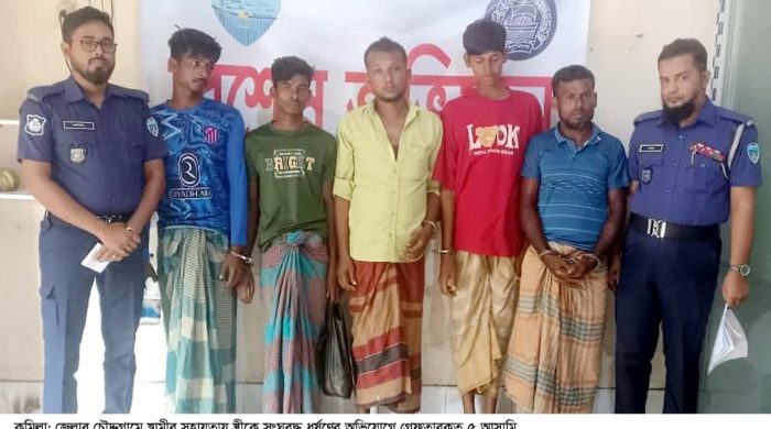 নিজস্ব প্রতিবেদকঃ দাম্পত্য কলহের জেরে স্বামীর সহায়তায় স্ত্রীকে তিন দিন ধরে ইটভাটায় আটকে রেখে দলবদ্ধ ধর্ষণের অভিযোগ উঠেছে। কুমিল্লার চৌদ্দগ্রাম উপজেলার কালিকাপুর ইউনিয়নের মিরশ্বানী এলাকার ‘ইসলামিয়া ব্রিক ফিল্ডের’ শ্রমিকদের থাকার ঘরের একটি কক্ষে এই ঘটনা ঘটেছে। শনিবার দুপুরে চৌদ্দগ্রাম থানায় স্বামীসহ পাঁচজনের বিরুদ্ধে মামলা করেছেন ভুক্তভোগী। আসামিদের গ্রেপ্তার করে আদালতের মাধ্যমে জেলহাজতে পাঠানো হয়েছে। গ্রেপ্তার