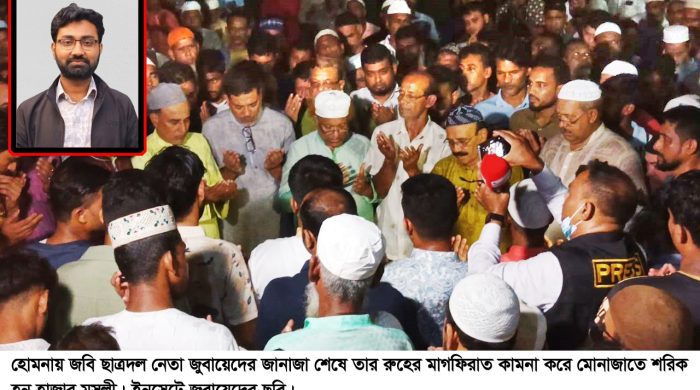 প্রতিনিধি, হোমনা  চোখের জল আর ভালোবাসায় জগন্নাথ বিশ্ববিদ্যালয় ক্যাম্পাসে (জবি) ছাত্রদল নেতা জুবায়েদকে চির বিদায় জানালো শিক্ষক, সহপাঠী, রাজনৈতিক সহকর্মী, বন্ধু, শুভাকাঙ্খী, আত্মীয়স্বজন ও স্থানীয়রা। সোমবার মাগরিবের নামাজের পর কুমিল্লার হোমনা কলাগাছিয়া এম এ উচ্চ বিদ্যালয় মাঠে দ্বিতীয় জানাজা অনুষ্ঠিত হয়। এর আগে তার প্রিয় শিক্ষাঙ্গন জবি ক্যাম্পাসে প্রথম জানাযা অনুষ্ঠিত হয়। রাত ৮টার দিকে