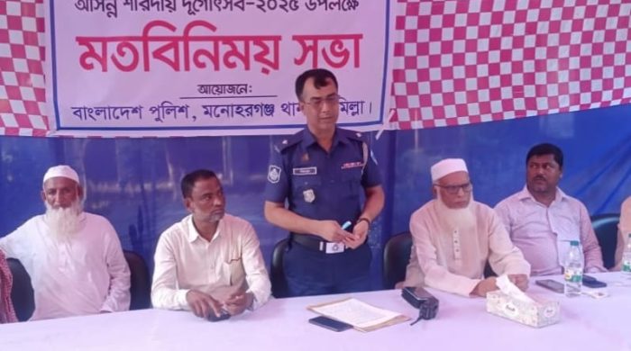 নিজস্ব প্রতিবেদক সনাতন ধর্মাবলম্বীদের প্রধান ধর্মীয় উৎসব শারদীয় দুর্গাপূজার নিরাপত্তাসহ সার্বিক বিষয়ে সংবাদ সম্মেলন করেছেন পুলিশ সুপার মোহাম্মদ নাজির আহমেদ খান। মঙ্গলবার (১৬ সেপ্টেম্বর) দুপুরে কুমিল্লা পুলিশ লাইন্স মিলনায়তনে এ সংবাদ সম্মেলন হয়। এ সময় অতিরিক্ত পুলিশ সুপার রাশেদুল হক চৌধুরীসহ পুলিশের অন্যান্য সদস্যরা উপস্থিত ছিলেন। সংবাদ সম্মেলন কুমিল্লা পুলিশ সুপার বলেন, কুমিল্লা জেলায় ৮১৮