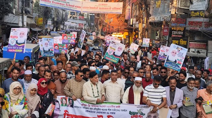স্টাফ রিপোর্টার।। কুমিল্লায় বিএনপি’র ভারপ্রাপ্ত চেয়ারম্যান তারেক রহমান ঘোষিত রাষ্ট্র সংস্কারের ৩১ দফা এবং কুমিল্লার উন্নয়ন-অভিমুখী ভবিষ্যৎ কর্মপরিকল্পনা জনগণের হাতে পৌঁছে দিতে বর্ণাঢ্য মিছিল ও লিফলেট বিতরণ কর্মসূচি পালন হয়েছে। বুধবার (২৬ নভেম্বর) বিকেলে কান্দিরপাড়স্থ বিএনপি দলীয় কার্যালয় থেকে হাজারো নেতাকর্মীর অংশগ্রহণে এক বিশাল মিছিল বের হয়। মিছিলটি নগরীর বিভিন্ন সড়ক প্রদক্ষিণ করে নগরীর চর্থা