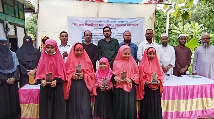 সংবাদদাতা, দাউদকান্দি দাউদকান্দি উপজেলার কাদিয়ারভাঙ্গা বেগম রহিমারোশন মাদরাসার বৃত্তি প্রাপ্ত শিক্ষার্থীদের সনদ প্রদান ও অভিভাবক কাউন্সেলিং অনুষ্ঠিত হয়েছে। রবিবার সকাল ১০টায় মাদরাসা মাঠে এই অনুষ্ঠান সম্পন্ন হয়। অনুষ্ঠানে মাদরাসার সভাপতি মো. নূরআলম ভূঁইয়ার সভাপতিত্বে ও প্রতিষ্ঠাতা সাংবাদিক শরীফ প্রধানের সঞ্চালনায় মোটিভেশনাল স্পিকার হিসেবে বক্তব্য রাখেন ভয়েজার ইংলিশ স্কুল এন্ড কলেজের প্রিন্সিপাল মোহাম্মদ সুমন সরকার ও