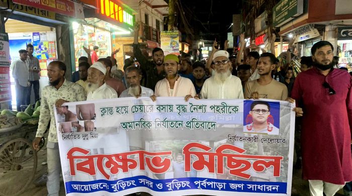 স্টাফ রিপোর্টার।। কুমিল্লার বুড়িচং উপজেলার সদর বাজারে ৬০ বছরের বৃদ্ধ পাহারাদার দুলা মিয়াকে যুবদল নেতা ও বাজার কমিটির সাধারণ সম্পাদক দেলোয়ার হোসেন কর্তৃক মারধরের ঘটনায় মামলা দায়ের করা হয়েছে। শনিবার সকালে আহত পাহারাদারে ভাই শ্যাম মিয়া বাদী হয়ে মামলা দায়ের করেন। এ ঘটনার প্রতিবাদে শনিবার (১৩ সেপ্টেম্বর) সন্ধ্যা সাতটায় ব্যবসায়ী ও গ্রামবাসীর উদ্যোগে বিক্ষোভ মিছিল