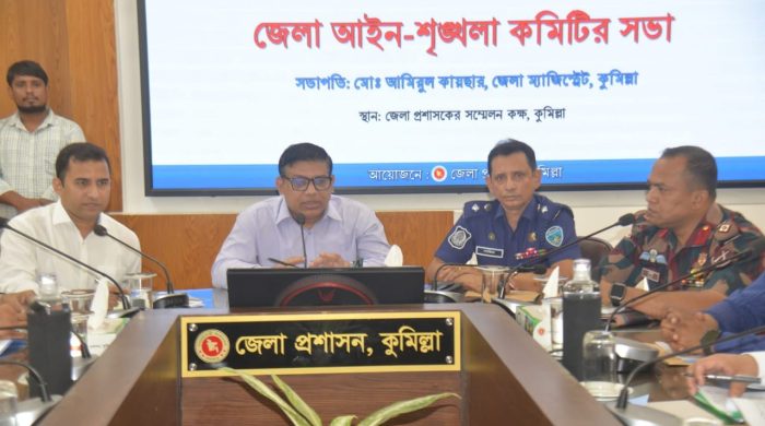 স্টাফ রিপোর্টার রবিবার ৯ নভেম্বর কুমিল্লা জেলা প্রশাসক মো. আমিরুল কায়সারের সভাপতিত্বে জেলা আইনশৃঙ্খলা কমিটির মাসিক সভা অনুষ্ঠিত হয়। সভায় আইনশৃঙ্খলার মাসিক প্রতিবেদন পাঠ করেন অতিরিক্ত জেলা ম্যাজিস্ট্রেট জাফর সাদিক চৌধুরী। প্রতিবেদন বিশ্লেষণে দেখা যায়, কুমিল্লায় সাম্প্রতিক সময়ে আইনশৃঙ্খলার পরিস্থিতি ক্রমেই অবনতির দিকে যাচ্ছে। জেলার অপরাধের চিত্র বিশ্লেষণে দেখা গেছে, অক্টোবর মাসে খুন, নারী ও