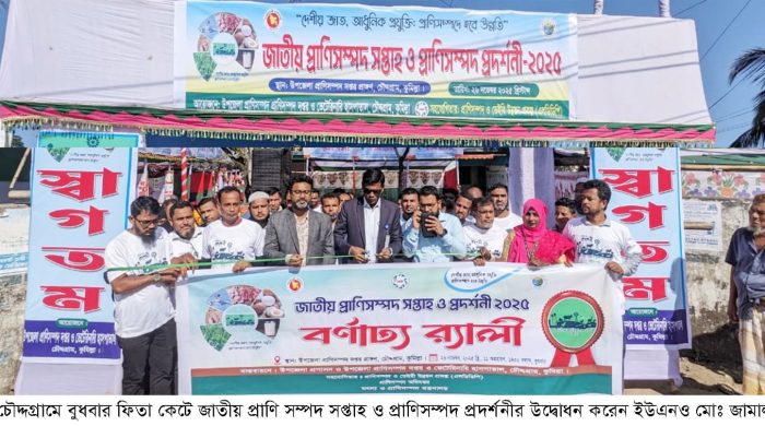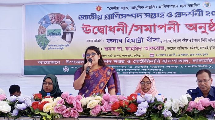 আহসান উল্লাহ রাজু/লালমাই। “দেশীয় জাত,আধুনিক প্রযুক্তি, প্রাণীসম্পদের হবে উন্নতি” এ স্লোগান নিয়ে জাতীয় প্রাণীসম্পদ সপ্তাহ ও প্রদর্শনী-২০২৫ এর উদ্বোধনী ও সমাপনী অনুষ্ঠানে উপজেলার বিভিন্ন পর্যায়ের ৩০ টি স্টল প্রদর্শিত হয়েছে। বুধবার, ২৬ নভেম্বর, ২০২৫ লালমাই উপজেলা পরিষদের মাঠে দিনব্যাপী প্রদর্শনীতে উপজেলা উন্নত জাতের গরু- ছাগলের স্টল,দেশী-বিদেশী বিভিন্ন জাতের হাঁস – মুরগীর পল্টি স্টল, উন্নত জাতের