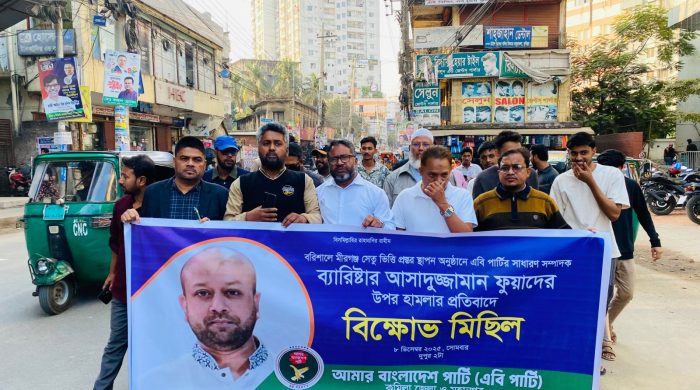 স্টাফ রিপোর্টার ব্যারিস্টার আসাদুজ্জামান ফুয়াদের ওপর হামলার প্রতিবাদে কুমিল্লা জেলা ও মহানগর এবি পার্টির বিক্ষোভ মিছিল অনুষ্ঠিত হয়েছে। সোমবার কুমিল্লা নগরীতে অনুষ্ঠিত মিছিলে উপস্থিত ছিলেন কুমিল্লা জেলার আহবায়ক কুমিল্লা-৬ আসনের সংসদ সদস্য প্রার্থী মিয়া মোহাম্মদ তৌফিক, কুমিল্লা মহানগর আহবায়ক গোলাম মুহা. সামদানী, কুমিল্লা জেলা সদস্য সচিব আব্দুল কাইয়ুম, সাংগঠনিক সম্পাদক আবু সালেহ মোঃ মাসুদ, মহানগর