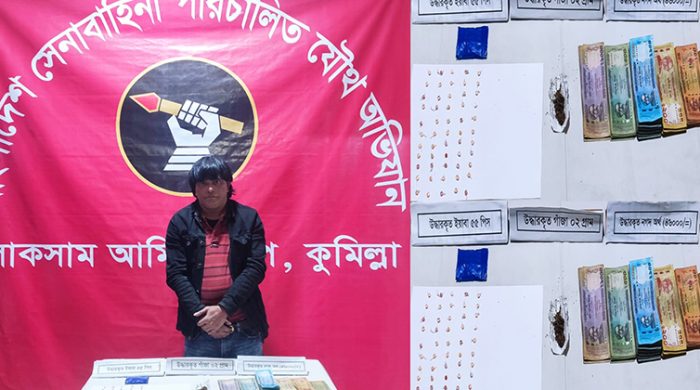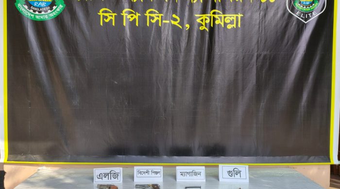 স্টাফ রিপোর্টার র্যাপিড অ্যাকশন ব্যাটালিয়ন (র্যাব)-১১ এর বিশেষ অভিযানে কুমিল্লা শহরের সংরাইশ এলাকা থেকে একটি বিদেশি পিস্তল, একটি ম্যাগাজিন, একটি দেশীয় এলজি ও চার রাউন্ড গুলি উদ্ধার করা হয়েছে। কুমিল্লা র্যাব-১১,সিপিসি-২ উপ-পরিচালক মেজর সাদমান ইবনে আলম স্বাক্ষরিত এক বিজ্ঞপ্তিতে এই তথ্য জানানো হয়। র্যাব-১১ বিজ্ঞপ্তি সূত্রে জানায়, গতকাল বৃহস্পতিবার রাতে র্যাব-১১, সিপিসি-২, কুমিল্লার একটি বিশেষ