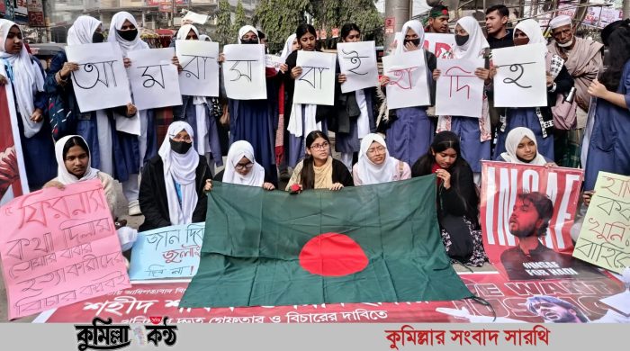 প্রতিনিধি, ভিক্টোরিয়া কলেজে ইনকিলাব মঞ্চের মুখপাত্র শহীদ শরিফ ওসমান বিন হাদিকে হত্যায় জড়িতদের গ্রেপ্তার দাবিতে বিক্ষোভ মিছিলন করেছে কুমিল্লা ভিক্টোরিয়া সরকারি কলেজের শিক্ষার্থীরা। বৃহস্পতিবার (১ জানুয়ারি) বেলা ১২টায় কুমিল্লা নগরীর কান্দিরপাড় পুবালী চত্বরে এ বিক্ষোভ হয়। এতে কলজের উচ্চমাধ্যমিক শাখার বিপুল সংখ্যক শিক্ষার্থীরা অংশগ্রহণ করেছে। দেখা যায়, শিক্ষার্থীর বিভিন্ন প্রতিবাদী স্লোগান তোলে কলেজের উচ্চমাধ্যমিক শাখা